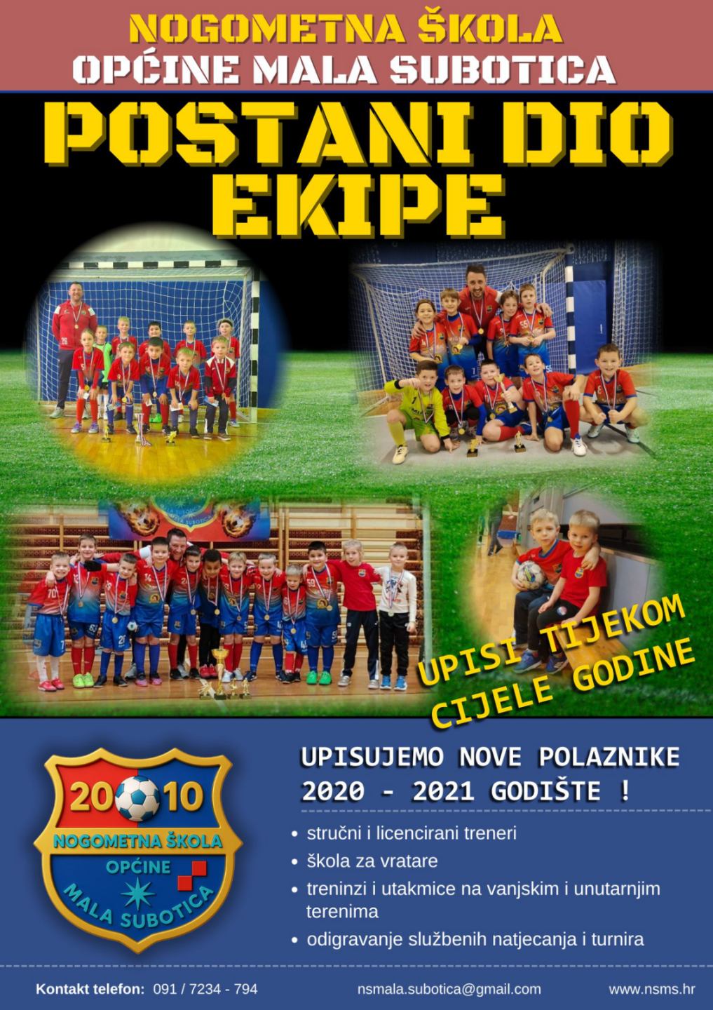 Nogometna škola Općine Mala Subotica od svog osnutka (2010. godine) kontinuirano podučava mlade nogometaše i nogometašice sa ciljem stjecanja i usavršavanja sportskih i ljudskih vještina. Prema rezultatskim i organizacijskim kriterijima i pokazateljima ubrajamo se među najuspješnije nogometne škole na području Međimurske županije. Rad s polaznicima organiziran je kroz sedam dobnih kategorija, od vrtićkog uzrasta do kadetske momčadi. Treninge vode licencirani treneri s dugogodišnjim iskustvom. Treninzi i utakmice održavaju se tijekom cijele kalendarske godine, na vanjskim terenima i u dvoranama. Organizirana je i zasebna škola za vratare. Od osnutka naše nogometne škole redovno sudjelujemo u svim službenim natjecanjima mlađih uzrasta u okviru HNS-a i MNS-a , kao i na velikom broju domaćih i međunarodnih turnira. S ponosom možemo istaknuti kako naše vitrine krasi više desetaka pehara osvojenih u raznim kategorijama. Pozivamo sve zainteresirane djevojčice i dječake već od navršenih 5 godina da nam se pridruže i započnu svoj sportski put kao dio naše velike nogometne obitelji. Upise vršimo tijekom cijele godine!